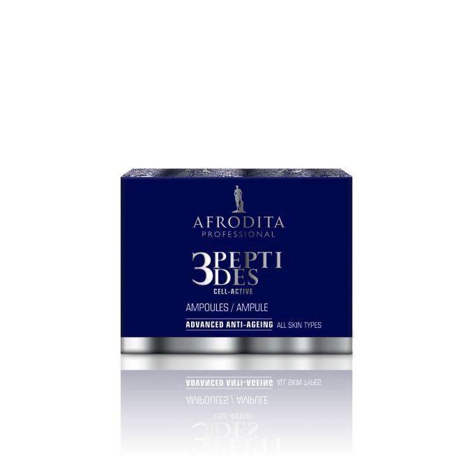 Erős, sejtszinten ható koncentrált cseppek, anti-age hatással. Serkenti a sejtek osztódását, a „fiatalság proteinjének” termelődését. Ennek köszönhetően jelentősen lassítja a természetes öregedési folyamatokat, javítja a bőr dermális struktúráját, tónusát, valamint csökkenti a ráncok mélységét, mennyiségét.Használat: Használat előtt rázd fel. Alkalmazd minden reggel és este a letisztított és tonizált arcra, nyakra és dekoltázsra. Ujjbeggyel masszírozd be a bőrbe, majd, használd a bőrtípusodnak megfelelő 3PEPTIDES vagy bármilyen más Afrodita Professzionális krémet, a kor és bőr állapotának megfelelően. Ajánlott az 5 napos kúra elvégzése legalább évente három alkalommal. Egy darab 1,5 ml-es ampulla elég az egész arcra, nyakra, dekoltázsra.